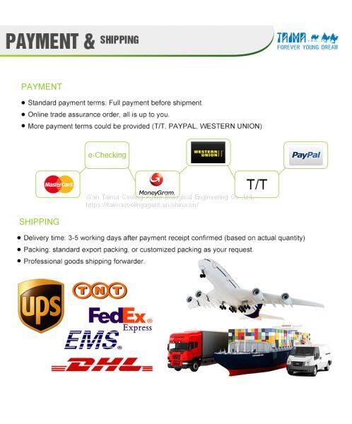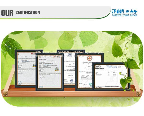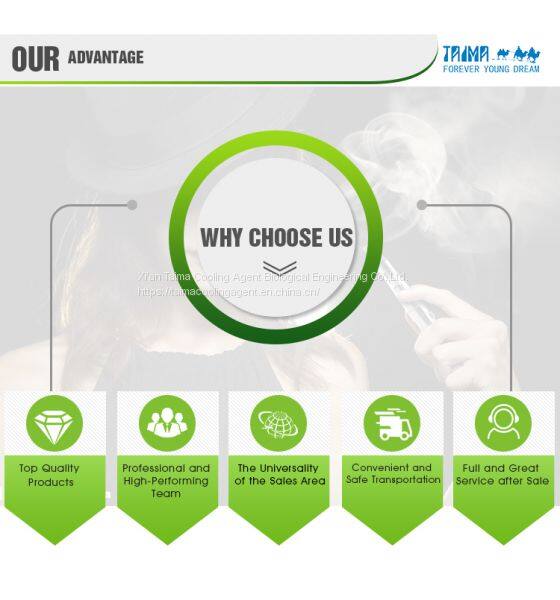 Application: Be used with other cooling items, and used in flavor and cosmetics can be caused lasting feeling of coolness, widely used in food, beverages, sweets, cosmetics, tobacco products, medicine and so on.