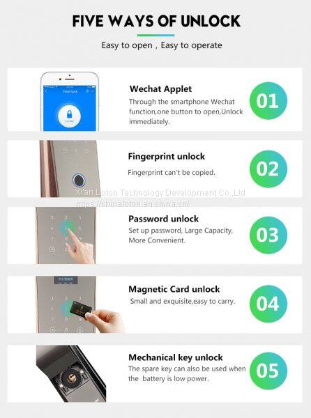 Fully Automatic Operation + Fingerprint + Password + Magnetic card +Mechanical Key+Wechat Applet |