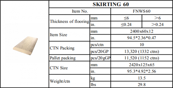 | Model Number | FNWS60 | Flooring Accessories Type | Other, Skirting |