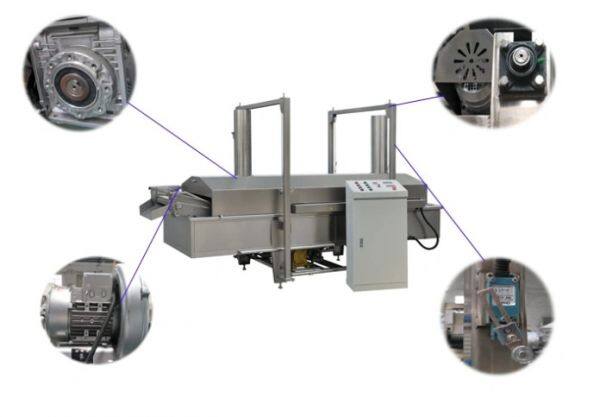 Flour Mixer →Screw Conveyor → Single-screw Extruder → Pulling and Cutter machine → Cooling Machine → Hot air Dryer → Automatic Fryer → Flavoring Line