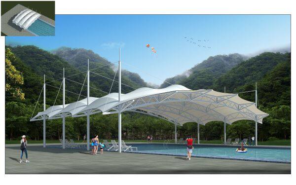This kind of Tension membrane structures can be widely used in seasonal or permanent structures for indoor sports and recreational facilities as gymnasiums, stadiums, swimming pools, cafeterias and food courts, exhibition and conventional centers, canopies and vehicle parkings, etc