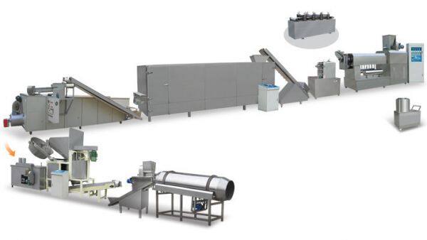 7. Machines Materials of snack pellet extruder machine : All the machines are made by stainless steel, this line is with reasonable design and with high automation; the screws are made by alloy steel, with building block system structure and self-cleaning function