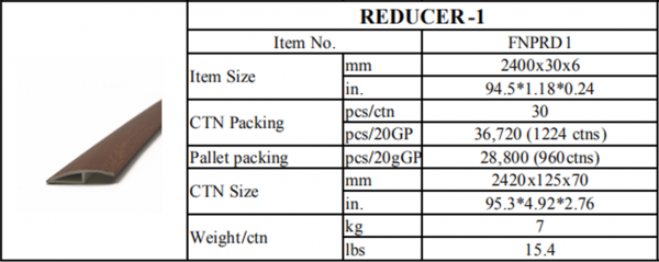 | Model Number | FNPRD1 | Flooring Accessories Type | Other, Reducer |