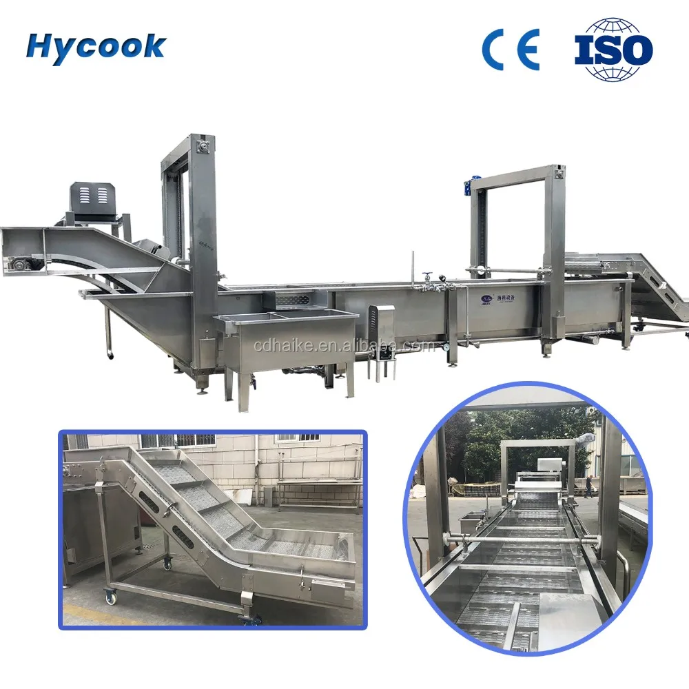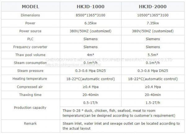 The main conveyor and the thaw pool are made of SUS304 stainless steel. The conveyor net adopts stainless steel conveyor chain plate. It has its own circulating filter system, defoaming system, tumbling system, heating system and lifting and cleaning system.
