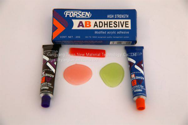 This is a double-component modified Acrylic adhesive Which is suitable for use in self-bonding and inter-bonding of such materials as metal,plastic,wood and ceramics.It is Widely used in a car, motocycle, handcrafts,chemical Engineering,machinery,etc.