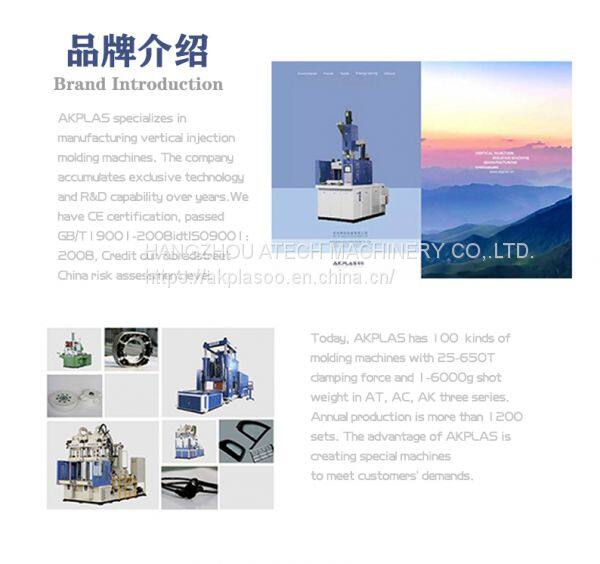 Established in 2007,HANGZHOU ATECH MACHINERY (AKPLAS) is a Manufacture and trader specialized in the research,development and production of vertical injection molding