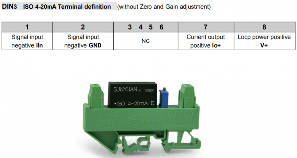 DIN3 Small Size DIN Rail Mounted Analog Signal Conditioner 4-20mA Output DIN3 ISO 4-20mA-E