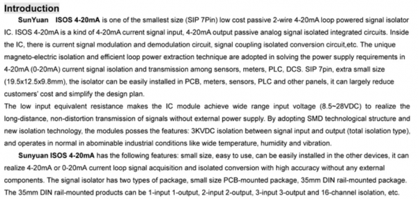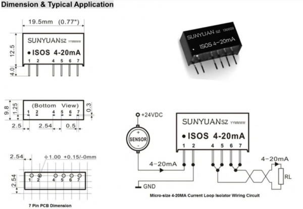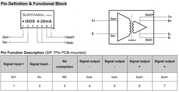 Super Mini SIP 7Pin 4-20mA Loop Powered Current Analog Isolator IC ISOS 4-20mA