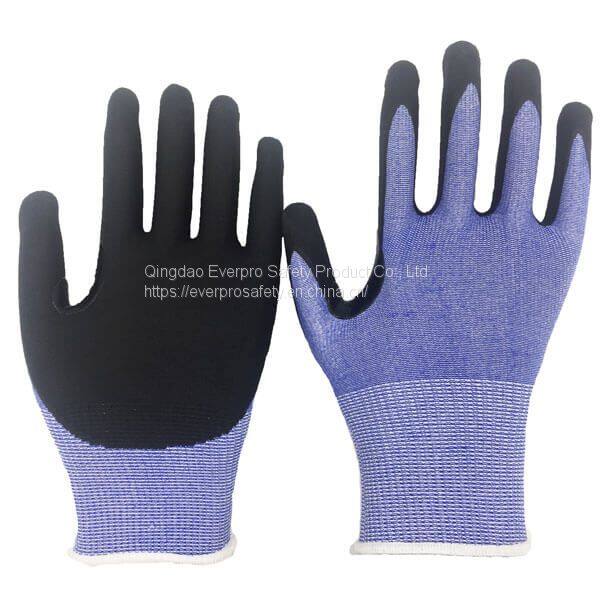 Cut Resistant Level 5 15G HPPE Fiberglass Liner Nitrile Microfine Foam Coated Anti Cut Gloves