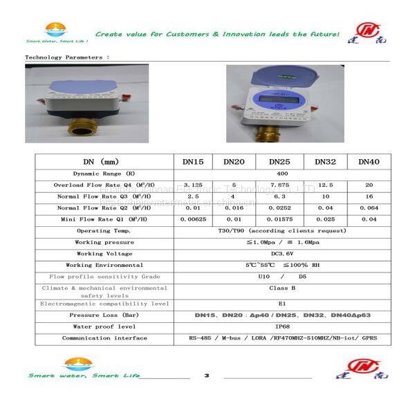 Smart Cold Ultrasonic Water Meter