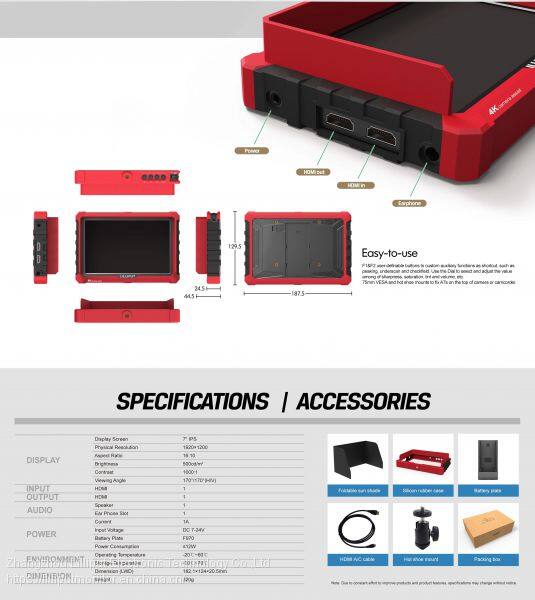 Home > Products > Camera Top Monitor > Lilliput Best 7 Inch IPS 4K HDMI On-camera Video Monitor With Red Rubber Case