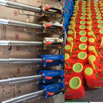 2.Smoke: need to add smoke agent(smoke agent or diesel fuel), if diesel fuel as smoke agent, it is best to use a double-tube mist machine, smoke suitable for large-scale spraying operations, smoke injection distance up to 20-30 meters, a box of agents can operate about 30 acres of land, Suitable for non-suitable for sex crop spraying operations, such as poplar, camphor and landscaping; It can also be used for killing operations. Smoke also has anti-freeze insulation and other effects.