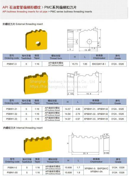 particularly in API Oil tubing & casing threading inserts R&D,quality in the same level with Sweden & USA brands.