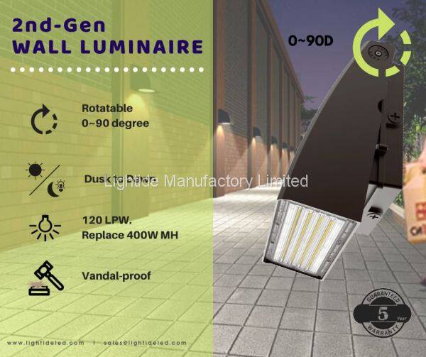 - Long Lifespan– At 8 hours daily use, Lightide’ wall pack floodlights are rated to last 17 years.