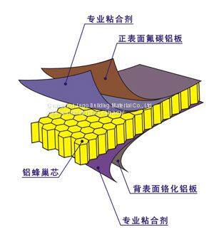 (2) Corrosion resistance: Honeycomb aluminum plate is treated with epoxy fluorocarbon and has strong corrosion resistance. The salt spray was sprayed for 48 hours without cracking or foaming.