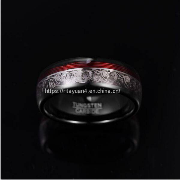 2019 NUNCAD 8mm Wide Tungsten Steel Ring Plating Black Inlay Triple Spiral Pattern+Red Guitar String Tungsten Carbide Ring T229R