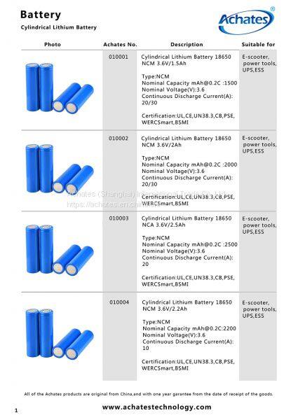 Model No.: | 010001 | Description: | Cylindrical Lithium Battery 18650 NCM 3.6V/1.5Ah |