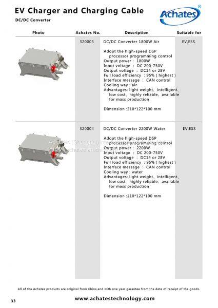 Adopt the high-speed DSP processor programming control Output power:2200W Input voltage : DC 200-750V Output voltage : DC14 or 28V Full load efficiency :95%(highest) Interface message : CAN control Cooling way : water Advantages: light weight、intelligent、low cost、highly reliable、available for mass production Dimension :210*122*100 mm | |||