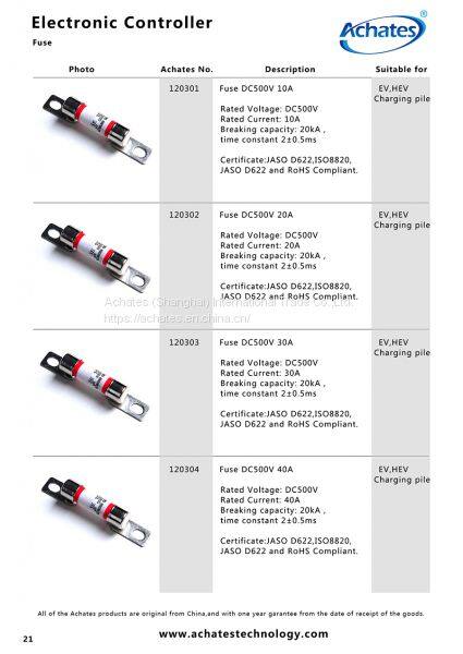 Model No.: | 120302 | Description: | Fuse DC500V 20A |