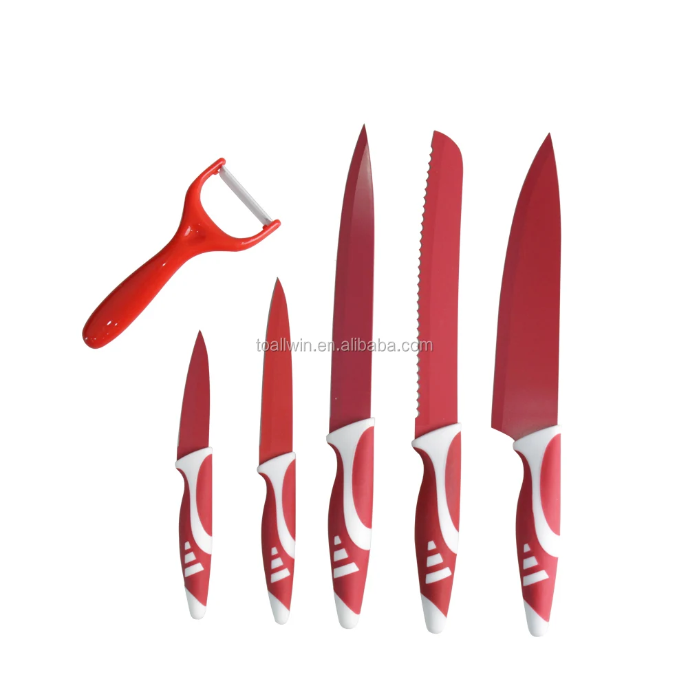 China Promotion 5pcs Coating Handle Stainless Steel Kitchen Knives Set