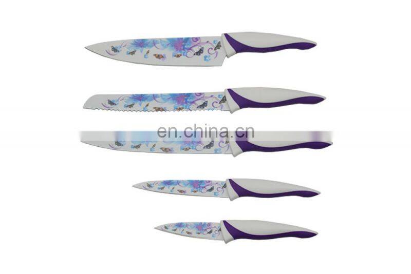 China Promotion 5pcs Coating Handle Stainless Steel Kitchen Knives Set