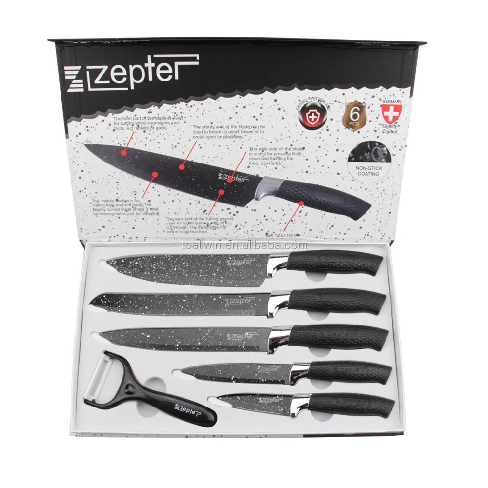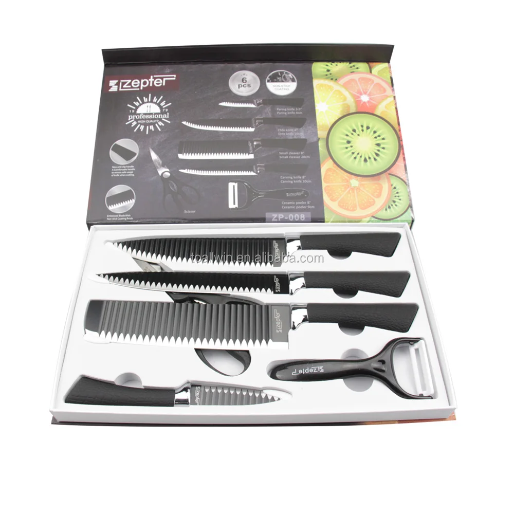 5pcs Multi Function S/S Non Stick Coating Knives Set With Gift Box