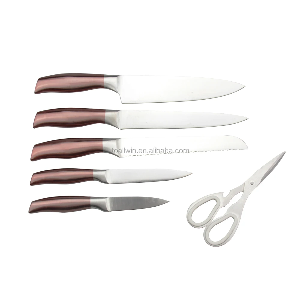 Coating Hollow Handle 6pcs Stainless Steel Chef Knife Set With Bone Scissors