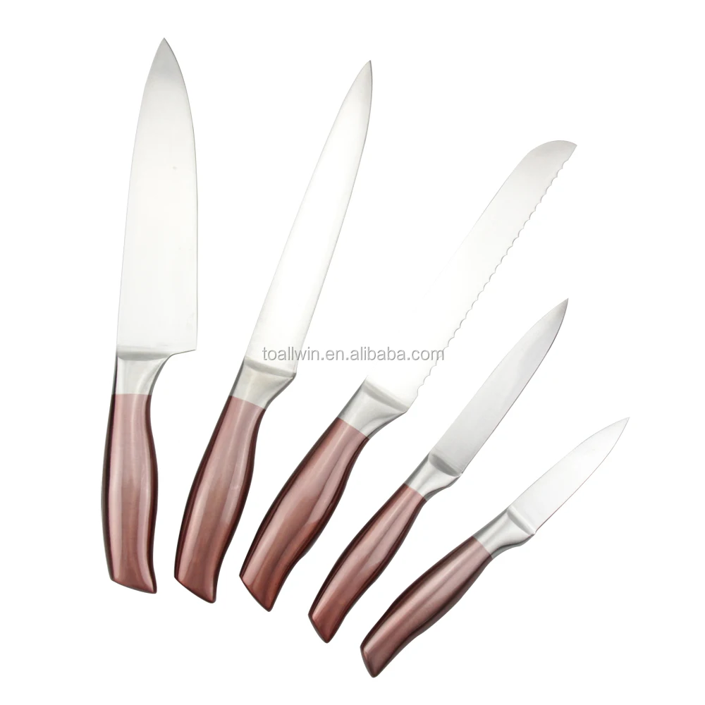 China Promotion 5pcs Coating Handle Stainless Steel Kitchen Knives Set