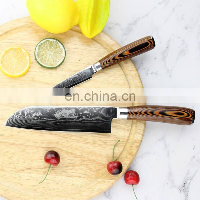 Laser Damascus Pattern Stainless Steel Kitchen Chef Knife
