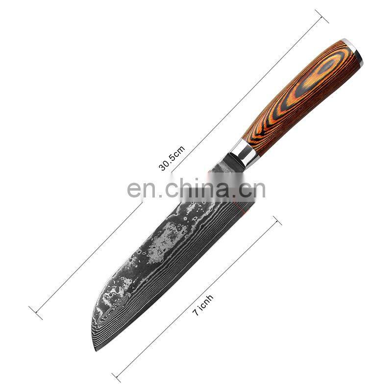 Home > Products > Silicone Cup > Japan Pakka Wood Handle VG-10 Steel 7 Inch Santoku Knife