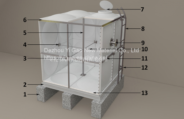 GRP/FRP water tanks is the abbreviation of Fiberglass Reinforced Plastic water tanks,are leading industry and civil standard water storage equipment on the market.There are many advantages such as lightweight,strong structure,modular and sectional assembly by standard panels design. GRP tanks provide safe environment with no risk of bacteria corrosion.