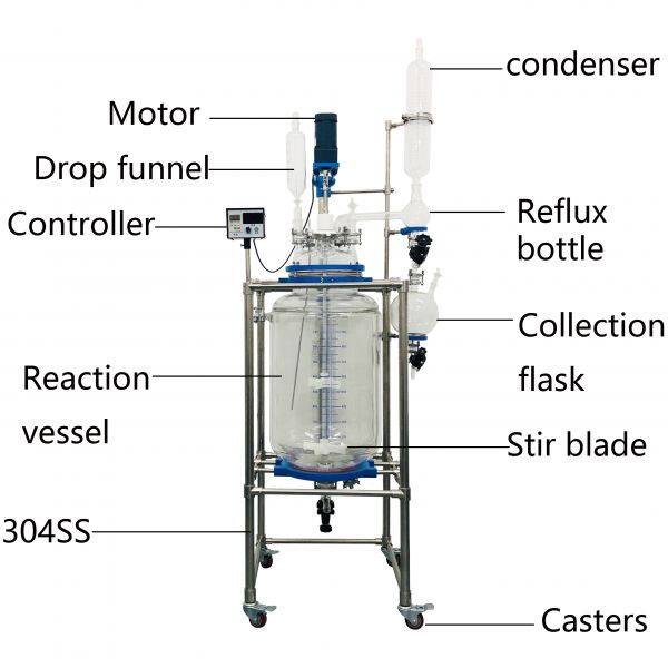 50L High Quality Chemical Mixing Jacketed Glass Reactor Stirrer
