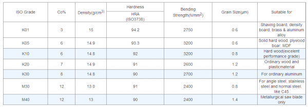 Some grades of tungsten carbide insert for woodworking: