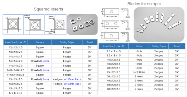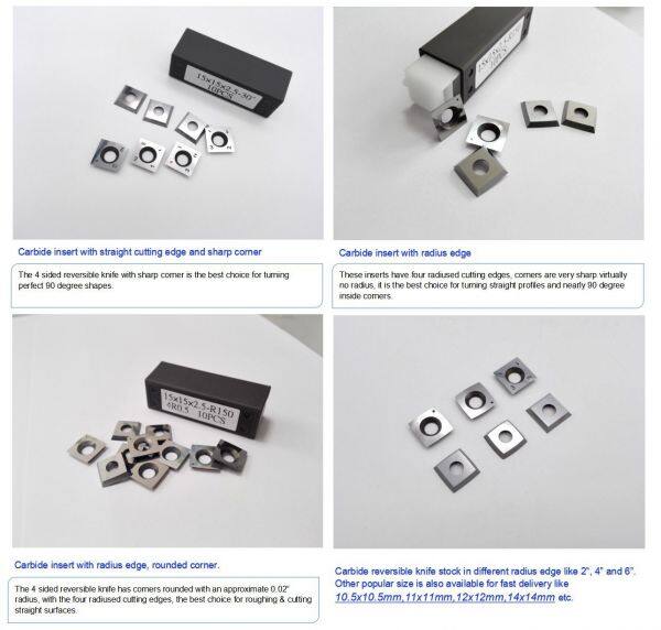 Some types of the standard woodworking carbide insert knives: