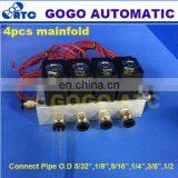 4pcs Manifold Valve Connet Pipe O.D 5/32 1/8 5/16 1/4 3/8 1/2 Pneumatic Direct Act Solenoid Valve 2V025-06 24V DC Gas Valve Set