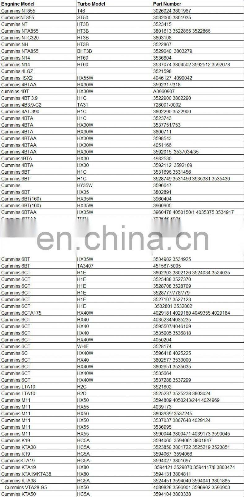 Follw is Some of our turbocharger list, please have a reference.
