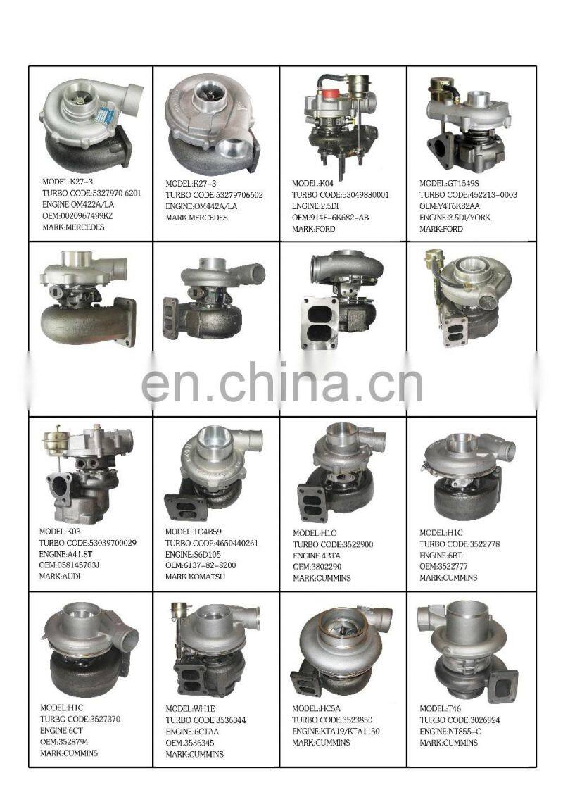 Some of our turbocharger list, please have a reference.