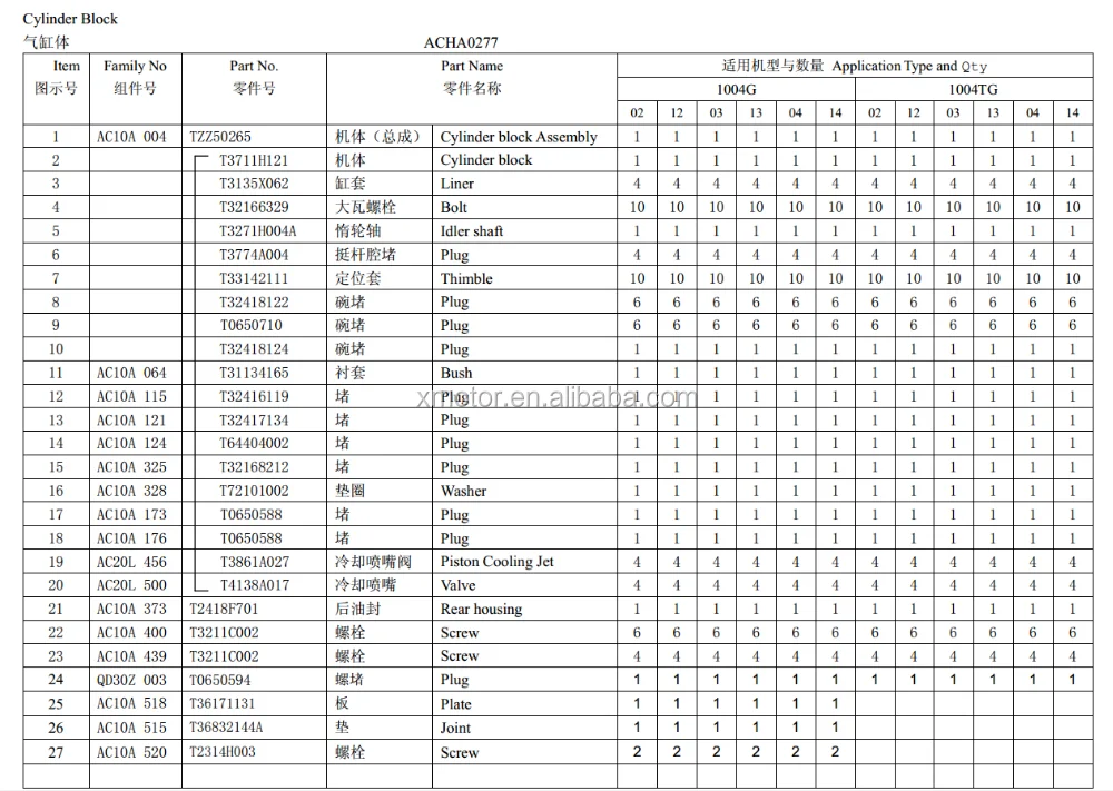 3.Type: cylinder block, cylinder head, crankshft, camshaft ......