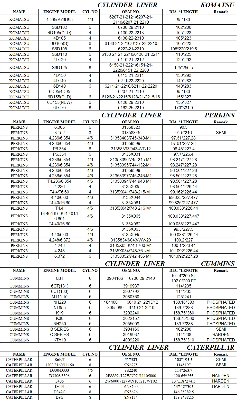 Home > Products > FOR KOMATSU & CAT > Excavator S6K Engine Parts 51-7537 517523 Cylinder Liner Kit