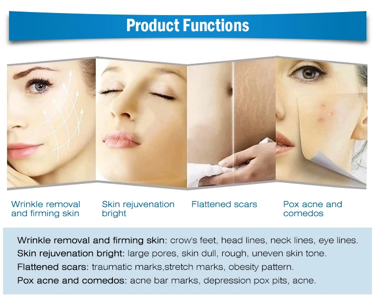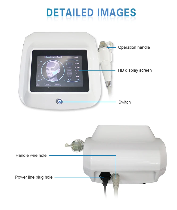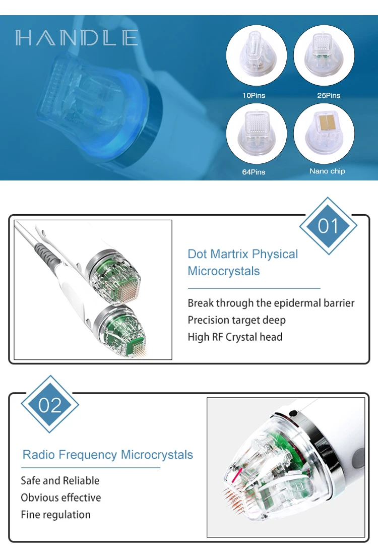 10/25/64 micro needles tip can adjust the needles depth, needles frequency, forming heating filed to the treatment area, breaking through epidermal barrier, give mesoderma tissue precise treatment.