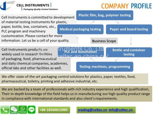 We are Cell Instruments Co., Ltd. packaging material instruments maker in Shandong China, please check our brochure for further informaiton. We are