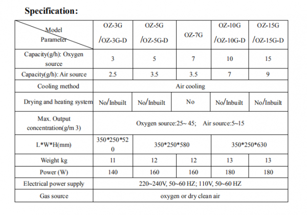 3g-15g OZ Series Ozone Generator for Water and Space Treatment