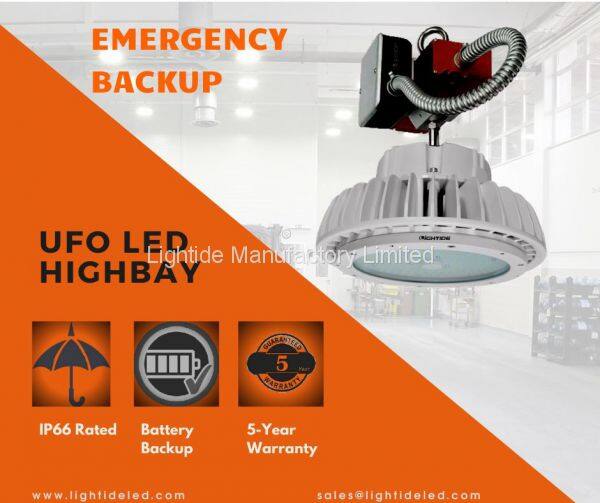 Lightide IP66 Rated UFO High Bay Light Emergency Backup 240W and 5 Years Warranty