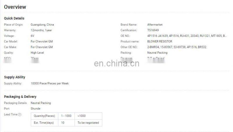 BLOWER RESISTOR for GM 4P1516 MT1805 RU-631 JA1639 REPLACEMENT