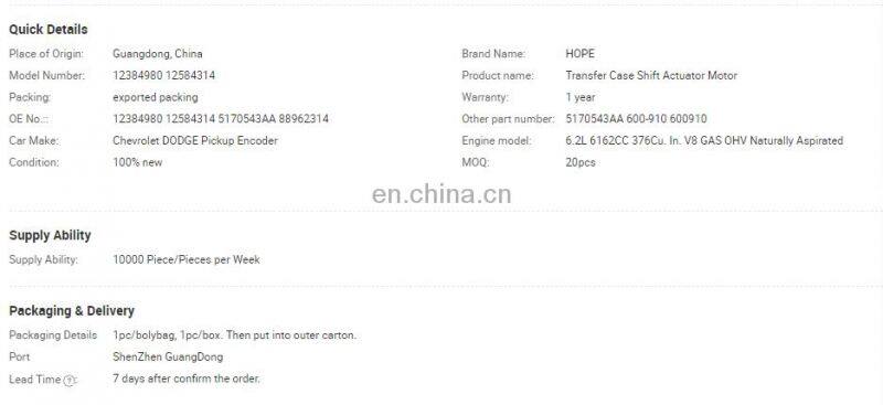 Home > Auto, Motorcycle Parts & Accessories > Auto Engine Structure > Other Auto Engine Structure > Transfer Case Shift Actuator Motor 12384980 For 06-07 Dodge Ram