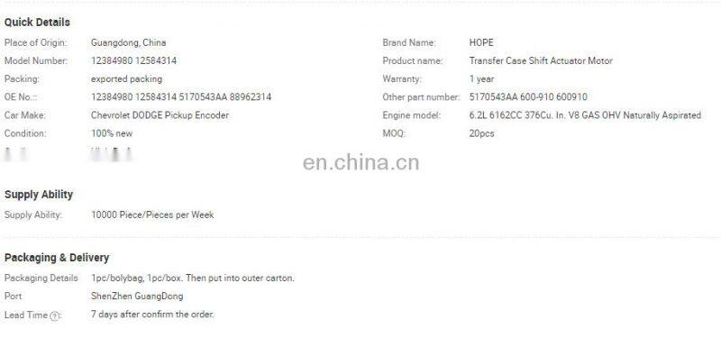 Home > Auto, Motorcycle Parts & Accessories > Auto Engine Structure > Other Auto Engine Structure > Transfer Case Shift Actuator Motor 88962314 5170543AA