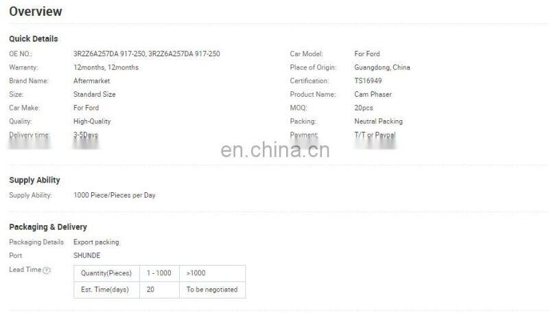Home > Products > Camshaft phaser > Variable Timing Camshaft Phaser 3L3E-6C524-FA 3R2Z6A257DA