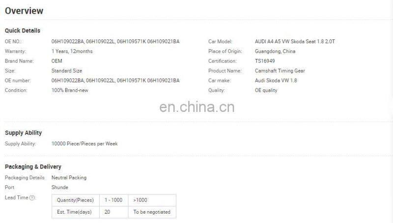 Home > Products > Intake /exhaust camshaft > OEM Exhaust Camshaft Timing Gear 06H109022L 06H109022BA 06H109571K 06H109021BA