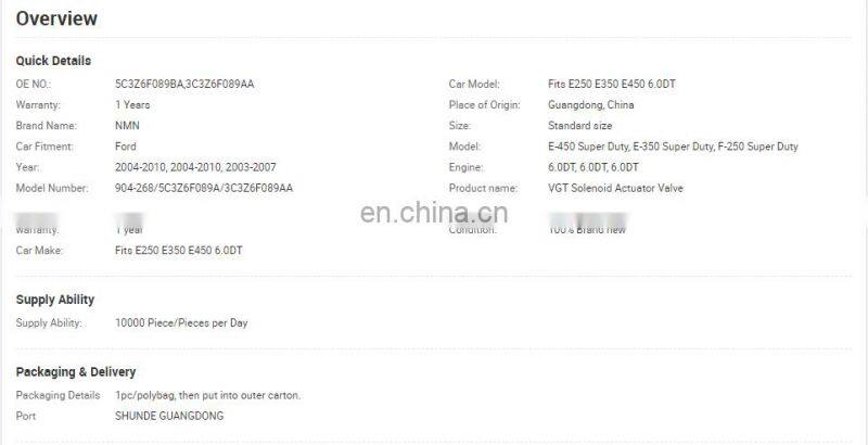 Home > Products > Ungrouped > 3C3Z6F089AA VGT Solenoid Actuator Valve Fits E250 E350 E450 6.0DT 98061571 5C3Z6F089BA