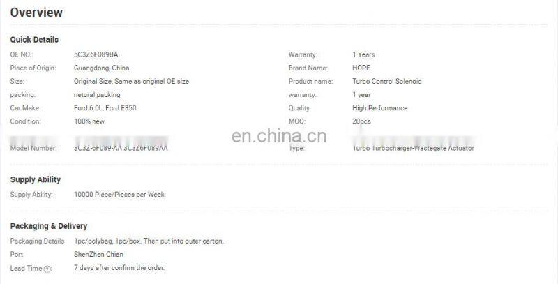 New Turbo Turbocharger-Wastegate Actuator 5C3Z6F089BA for Ford E350